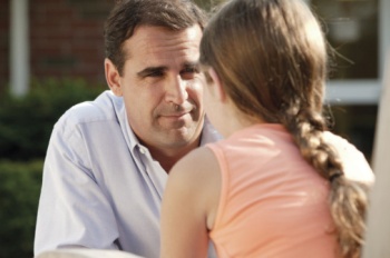 Вам стоит попробовать использовать разные формулировки, чтобы узнать, что именно ребенок способен понять, избегая при этом тех форм общения, которые заведомо останутся непонятыми. Физически вы не должны, например, возвышаться над детьми во время разговора. Вместо этого вам следует опуститься вниз, чтобы стать примерно того же «роста», что и ребенок: присесть на корточки, сесть на стул, согнуться и т. д. Это обеспечит хороший зрительный контакт с ребенком, который легче будет поддерживать в течение беседы.